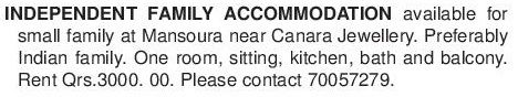 Independent Family Accommodation At Mansoura Near Canara Jewellery