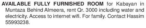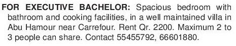 Executive Bachelor Accommodation Villa In Abu Hamour Near Carrefour